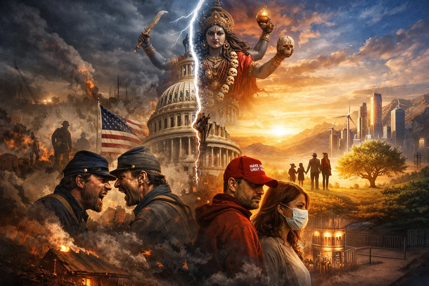 So what is it about Donald Trump that cuts so sharply through the American psyche? What war within us is he revealing? If, as the saying goes, we get the leaders we deserve, then perhaps Trump is not an anomaly but an agent of disruption who mirrors Kali, the Hindu god of death and destruction, fertility and rebirth, cloaked in red, white, and blue.